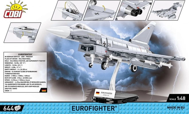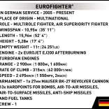 Construisez l’iconique EUROFIGHTER TYPHOON à l’échelle 1:48 avec 644 pièces COBI. Le modèle offre une canopée ouvrante, des surfaces mobiles, un train d’atterrissage amovible et un support avec plaque nominative pour une exposition spectaculaire. Des impressions de haute qualité qui ne décolorent ni ne s’usent, et une compatibilité totale avec d’autres marques. Idéal pour les passionnés d’aviation, de militaria et les collectionneurs de la série Armed Forces.