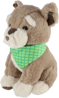 Adorable chien en peluche Azorek de couleur marron–crème avec un foulard à carreaux, doux, moelleux et idéal pour les câlins. Un super compagnon pour les enfants dès la naissance, qui apporte un sentiment de sécurité, favorise le développement émotionnel et est facile à entretenir.