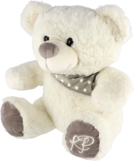 Ce tendre ours en peluche de 35 cm est fait pour les câlins et l’apaisement. Grâce à sa matière douce et à ses détails délicats, il plaira aux tout-petits comme aux frères et sœurs plus grands. La couleur blanche rehaussée d’accents bruns contrastés et le joli petit foulard confèrent au jouet une allure intemporelle.