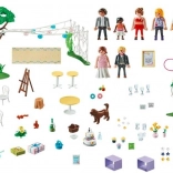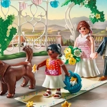 Profitez d’une journée de mariage parfaite avec le Promo Pack PLAYMOBIL. Musique romantique et lumière des lanternes apportent l’ambiance à votre fête de jardin. La fillette jette des fleurs, tandis que le musicien crée une atmosphère enchantée. Le chien vous apporte les anneaux avec joie. Ce set comprend :