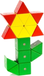 Sept formes en cinq couleurs stimulent l’imagination, des mosaïques simples aux modèles spatiaux avancés – le set évolue avec les compétences de l’enfant.