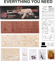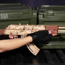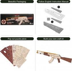 Construisez un modèle en bois détaillé du légendaire fusil d’assaut AK-47 et profitez d’un divertissement malin sans colle. Le kit comprend 315 pièces découpées avec précision, un mécanisme fonctionnel pour tirer des élastiques et des cibles en bois pour s’entraîner en toute sécurité. Idéal pour une détente créative, comme décoration et comme cadeau original pour les passionnés dès 14 ans.