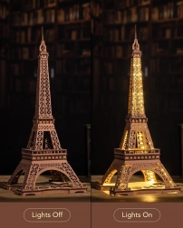 Découvrez la magie de Paris chez vous. Le modèle Rolife Nuit de la tour Eiffel restitue fidèlement l’architecture en treillis iconique de 1889 et, grâce aux LED intégrées, se transforme après assemblage en lumière d’ambiance décorative à l’atmosphère douce et romantique. Les pièces en bois découpées au laser s’emboîtent avec précision pour un montage fluide et agréable.