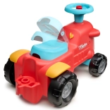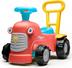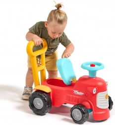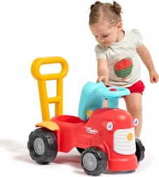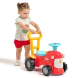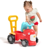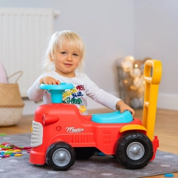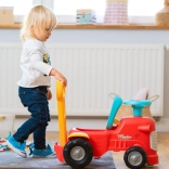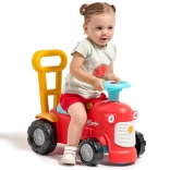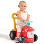 En se tenant derrière le tracteur, les enfants peuvent utiliser les poignées ergonomiques pour apprendre à marcher de manière ludique et sécurisée. Sous le siège, il y a un petit espace de rangement pour les trésors.