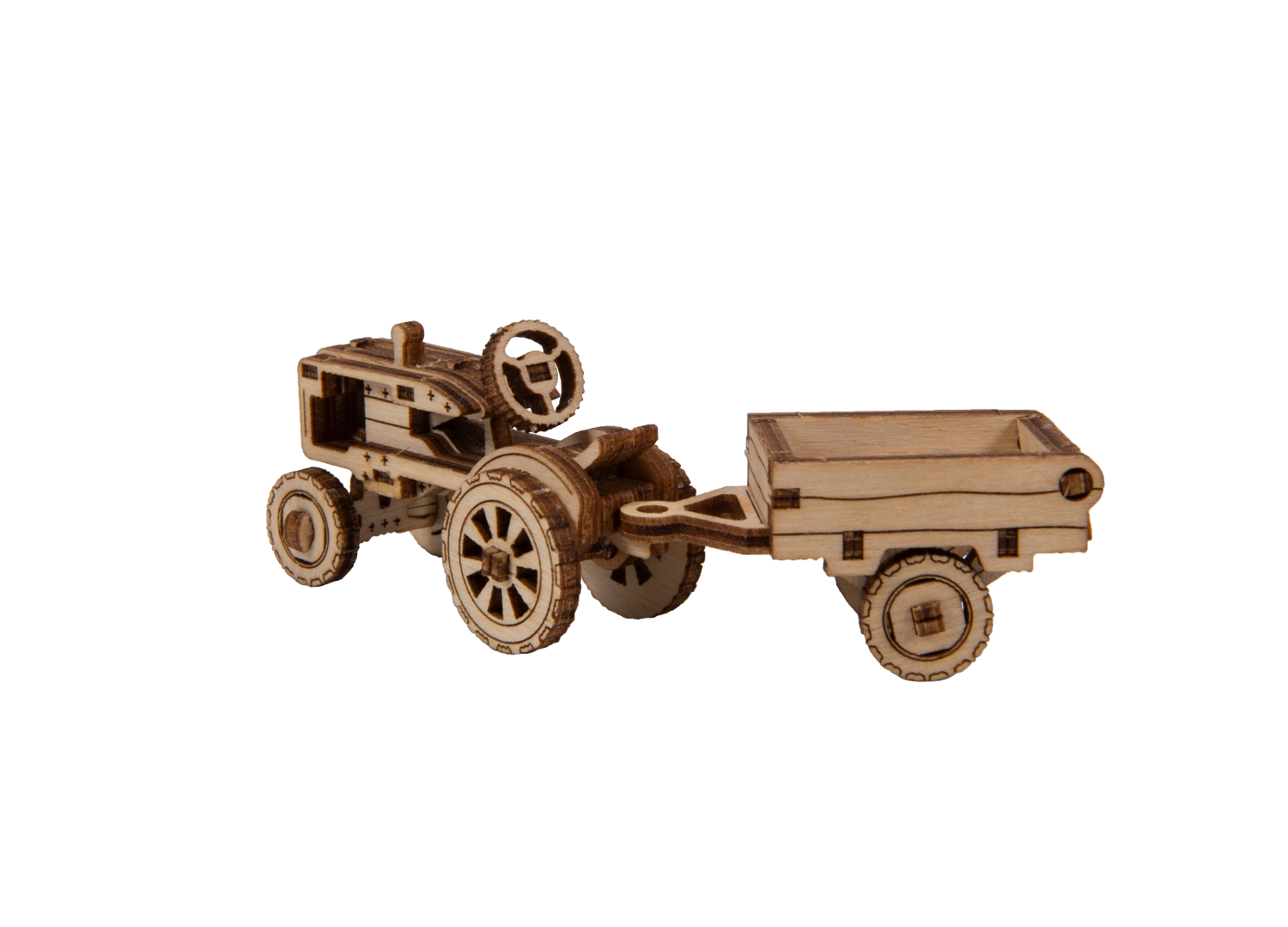 puzzle 3D mécanique en bois – tracteur avec remorque