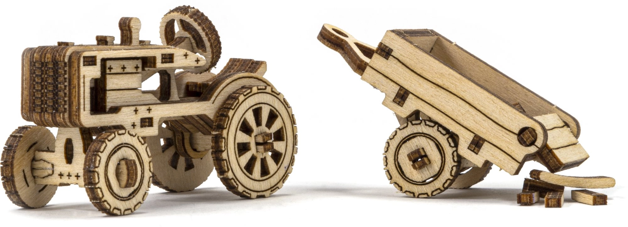 Découvrez des puzzles mécaniques 3D ludiques et ingénieux pour assembler un tracteur en bois détaillé avec remorque sans colle. Un montage facile et rapide qui ravira débutants comme avancés, avec une contreplaqué de bouleau de qualité et des roues mobiles pour une excellente expérience de construction et une décoration élégante d’intérieur. Idéal aussi comme cadeau original.