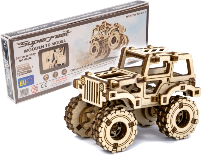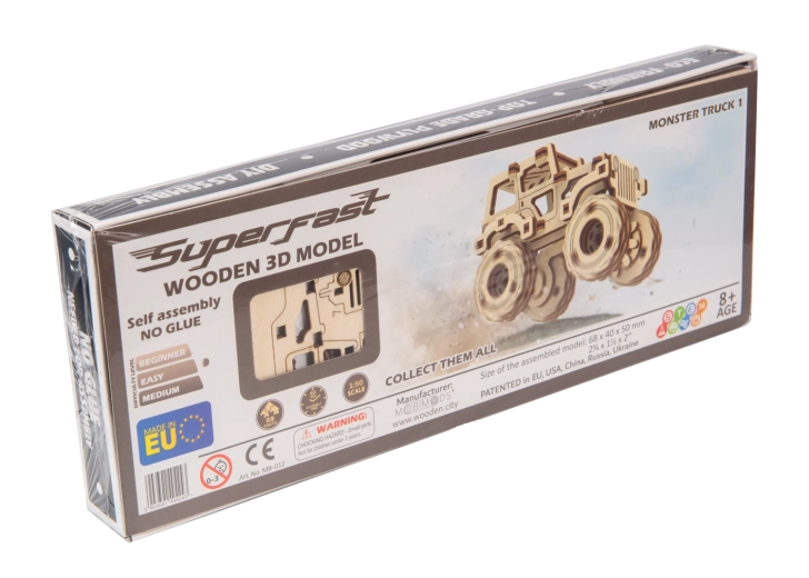 Offrez-vous le plaisir du montage avec le puzzle 3D en bois Monster Truck Superfast. Grâce aux découpes laser précises, les pièces s’ajustent parfaitement, et vous obtenez un modèle stylé avec un mouvement fonctionnel des roues – idéal à exposer comme pour de courts trajets sur le bureau.