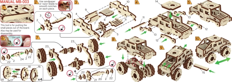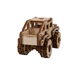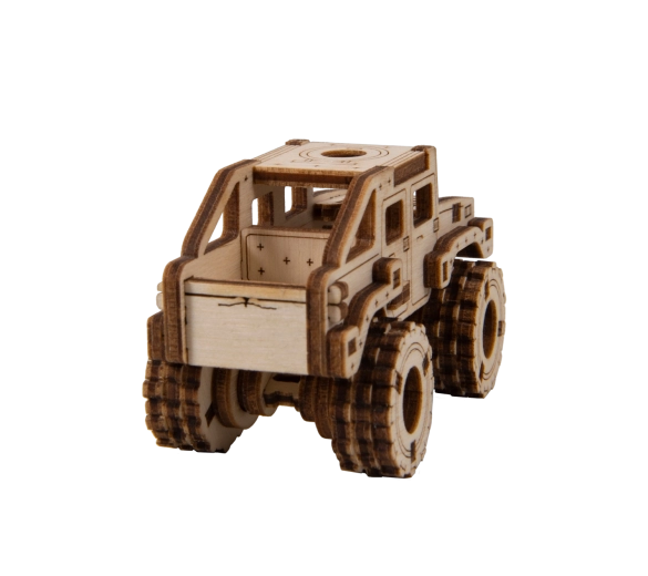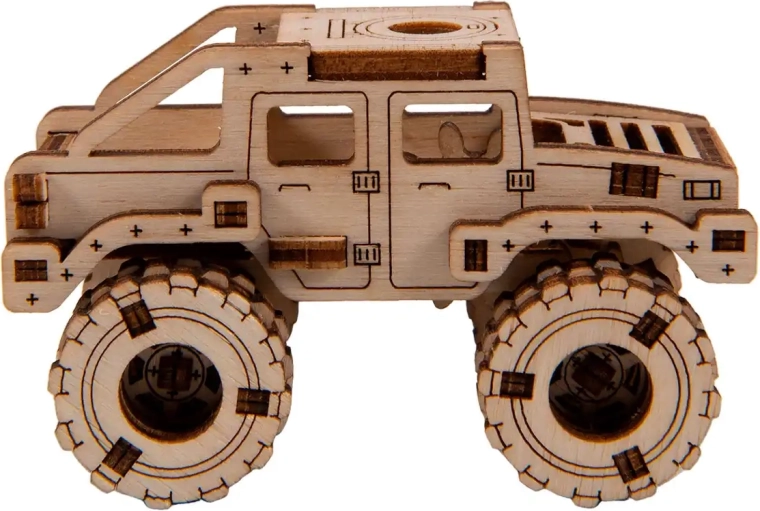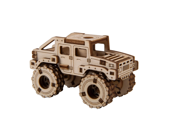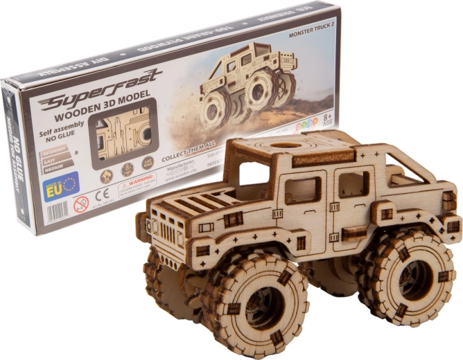 Ce modèle Monster Truck 2 est conçu pour un montage rapide et agréable – sans colle, sans désordre, avec un maximum de plaisir au résultat. Grâce aux découpes laser précises, les pièces s’emboîtent parfaitement et, au bout de 30 minutes, vous obtenez une voiture robuste aux grandes roues, parfaite sur une étagère ou un bureau.