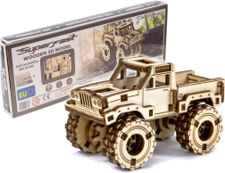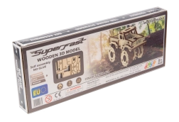 Ce puzzle 3D en bois MONSTER TRUCK 3 offre une expérience de construction unique – sans colle, sans désordre, avec une précision maximale des découpes. Le modèle s’inspire des premiers camions militaires américains d’après‑guerre et affiche un look tout‑terrain authentique avec de grandes roues et une cabine robuste.