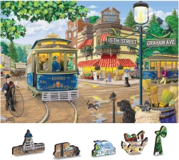 Ce puzzle en bois premium présente une scène vivante avec un tramway rétro et une rue pleine de détails d’époque. Grâce aux pièces découpées au laser aux bords lisses, l’assemblage est à la fois un plaisir et un défi. Le format double face permet de composer côté recto d’après le motif ou côté verso d’après un motif répétitif.