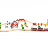 Le set comprend 53 éléments qui permettent aux enfants d’assembler librement différents scénarios, tout en conservant l’esprit d’une ferme. Les figurines représentant des animaux sont complétées par la ferme et le moulin à vent sous lequel le train peut passer. Ce chemin de fer non seulement amuse, mais apprend aussi aux enfants la vie à la campagne.