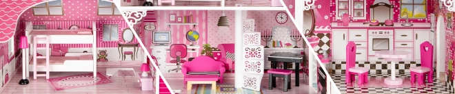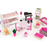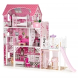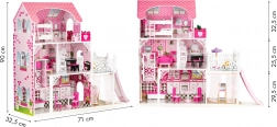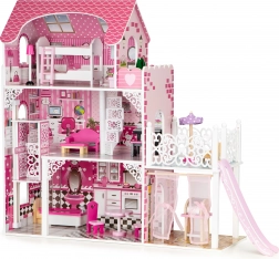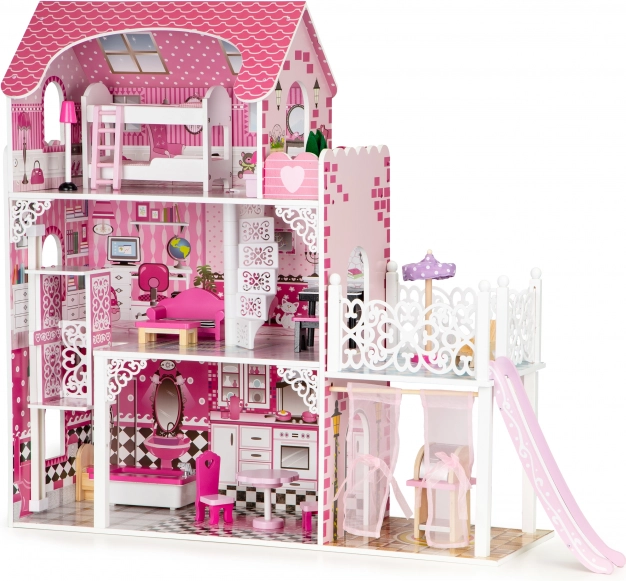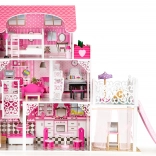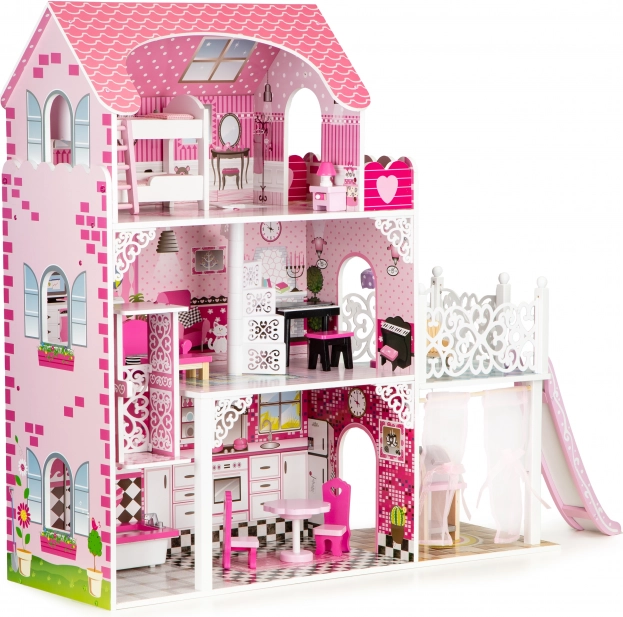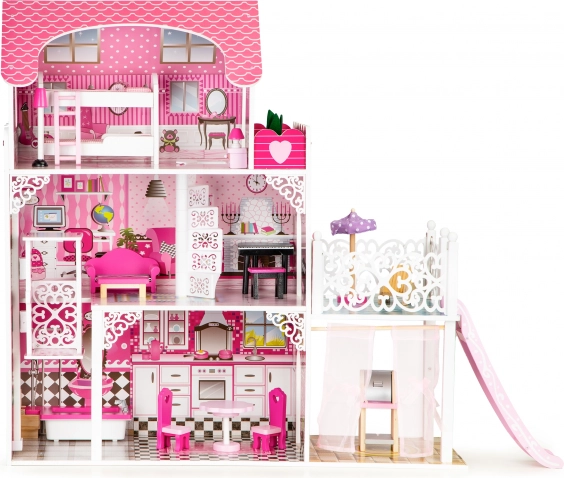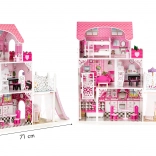 La maison de poupée ECOTOYS est un lieu idéal pour toutes les petites amatrices de jeux imaginaires. Elle offre 3 niveaux indépendants et un total de 7 pièces, qui reproduisent parfaitement une véritable maison résidentielle. Chaque pièce est complétée dans un style différent, permettant aux enfants de jouer aux designers d'intérieur et d'organiser les meubles selon leur propre imagination.