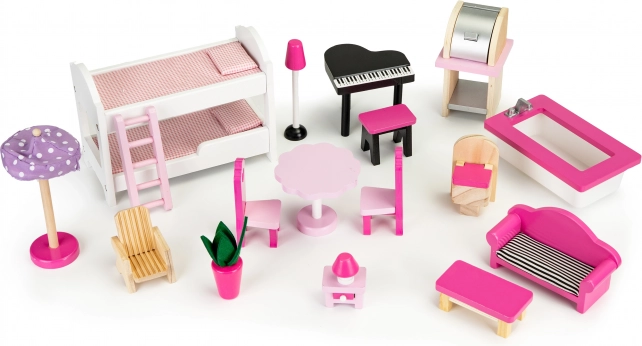 Le paquet comprend également un ensemble de 16 pièces de mobilier, incluant un lit, un piano, un canapé, et de nombreux autres éléments détaillés qui offriront aux enfants un espace pour jouer des rôles créatifs et développer des compétences manuelles.
