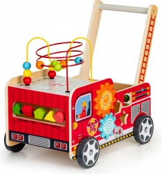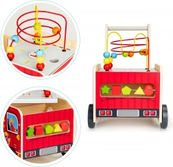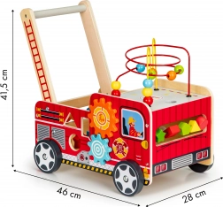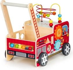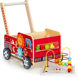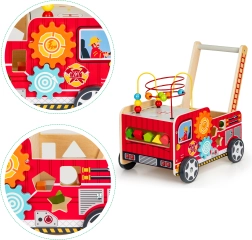Le chariot en bois en forme de camion de pompier est l'outil idéal pour les premiers pas de votre enfant. Il est conçu pour offrir de la stabilité tout en fournissant du plaisir grâce à différents éléments interactifs comme des engrenages, labyrinthes de perles et trieurs de formes.