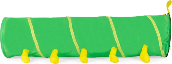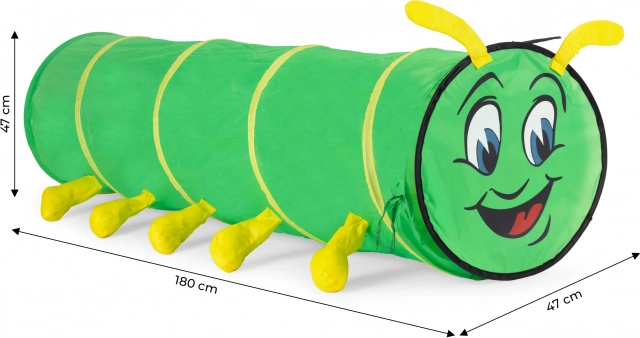 La structure auto-déployante permet une utilisation immédiate : il suffit de le sortir de son étui et le tunnel se déploie à sa taille complète 180 × 47 × 47 cm. Le matériau résistant convient pour jouer à l’intérieur comme à l’extérieur, et son faible poids facilite le transport et le rangement.