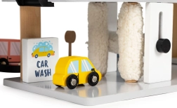 Le garage est fabriqué en bois résistant avec des bords lisses et sûrs. Les nombreux accessoires, dont le lave-auto et la station-service, stimulent l’imagination et prolongent le temps de jeu. Un cadeau idéal dès 3 ans, qui favorise le développement de la motricité, la coordination et la pensée logique.