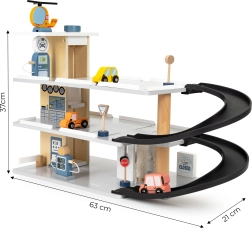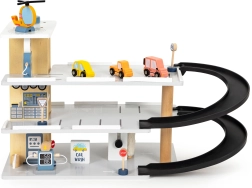 Découvrez un jouet amusant et sûr pour les petits conducteurs : le garage en bois ECOTOYS avec 3 étages, ascenseur mobile, héliport et petites voitures avec hélicoptère inclus. La structure en bois robuste, sans arêtes vives, favorise le jeu créatif, l’apprentissage des règles de circulation et la motricité fine. Sont également inclus une station de lavage et une station-service pour une expérience encore plus réaliste.