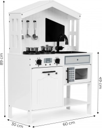 La cuisine enfantine en bois ECOTOYS est idéale pour les petits chefs. Grâce à un design réaliste et des éléments fonctionnels, elle imite une vraie cuisine et offre des heures d'amusement aux enfants. Elle inclut un four, un micro-ondes, des boutons rotatifs et des accessoires.