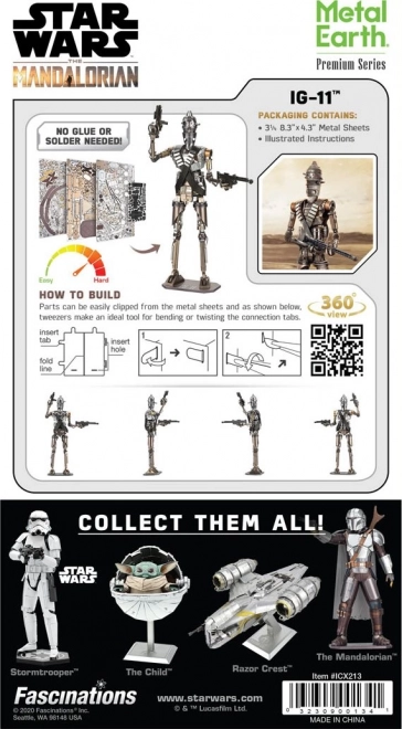 Plongez dans l'univers de Star Wars et assemblez une réplique détaillée du robot IG-11 de la série Mandalorian. Le kit Metal Earth 3D Puzzle offre un aspect authentique grâce à la gravure laser de précision.