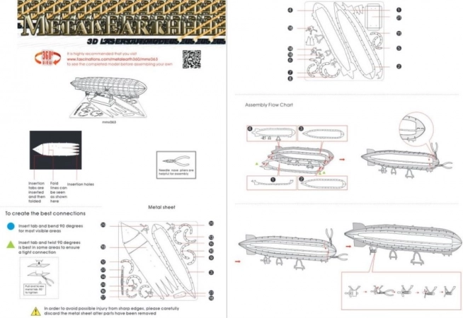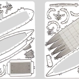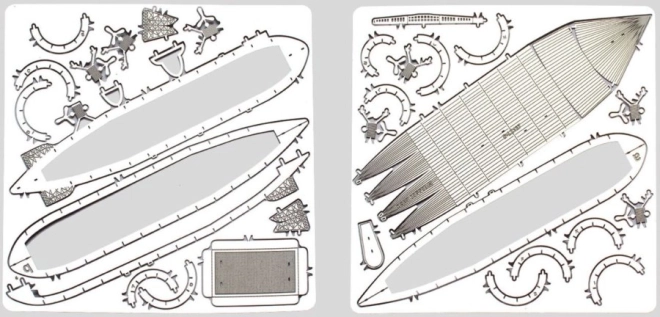 L'emballage comprend deux plaques d'acier avec des pièces découpées au laser et un guide de montage. Les outils ne sont pas inclus. Pour assembler les pièces, vous aurez besoin de petites pinces coupantes et de pinces fines. Recommandé pour les modélistes âgés de 14 ans et plus.
