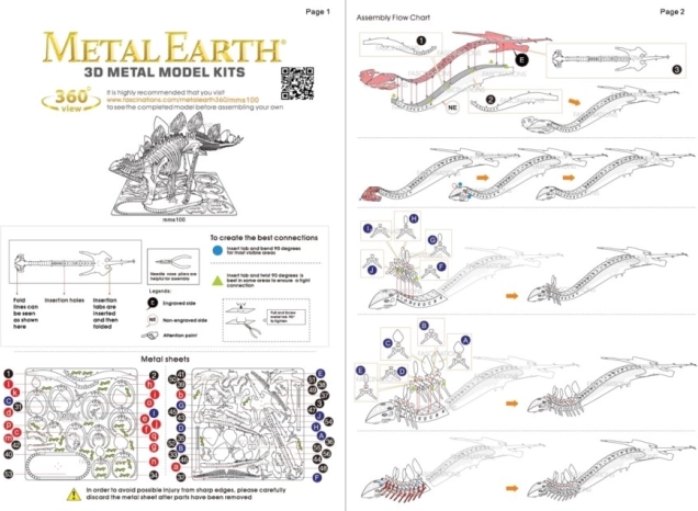 Retirez les pièces des plaques métalliques, en utilisant au besoin de petites pinces coupantes (non incluses). Les pièces se connectent entre elles à l’aide de verrous formés par une languette et un trou. Pliez la languette avec de petites pinces fines (non incluses) et assemblez progressivement tous les verrous jusqu’à obtenir une pièce maîtresse très réaliste !