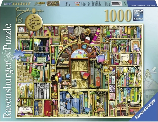 Puzzle 1000 pièces Librairie Folle 2. L’humour haut en couleur de Colin Thompson, carton de qualité, surface anti-reflets, dimensions 69,9 × 49,7 cm.