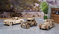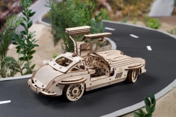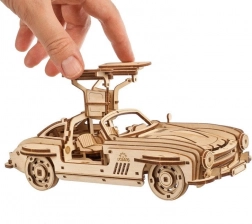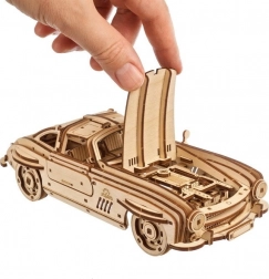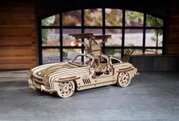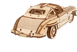 Entrez dans le monde des véhicules emblématiques avec le modèle en bois Winged Sports Coupe par Ugears. Ce modèle imite le design élégant d'une voiture de sport classique avec des portes à ouverture ailée, offrant une expérience de manipulation unique. La voiture propose deux modes de fonctionnement : tension par clé à cliquet ou tension en arrière sur une surface plane. Sous le capot se cache un modèle de moteur détaillé, accessible en le soulevant.