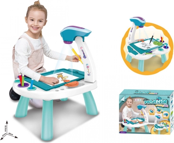Mini projecteur de dessin 2-en-1 – table robot, bleu