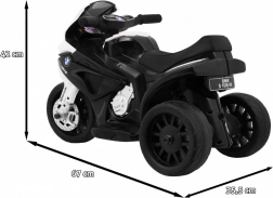 Une moto électrique pour enfants au style inspiré de la BMW S 1000 RR, offrant une conduite sûre sur trois roues, un éclairage LED réaliste et des sons au volant. Sa construction légère et stable avec revêtement en éco‑cuir sur la selle ravira les petits pilotes comme leurs parents.