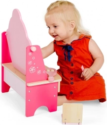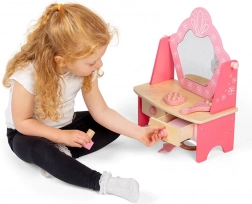 Cette élégante coiffeuse rose fera le bonheur de toutes les petites coquettes. Grâce au bois de qualité et à une fabrication soignée, elle est stable et sûre, tandis que de délicats détails floraux apportent une touche de charme à la chambre d’enfant. Le miroir facilite les rituels quotidiens et les deux tiroirs offrent assez d’espace pour tous les trésors.