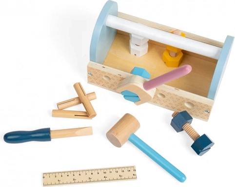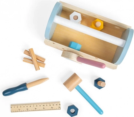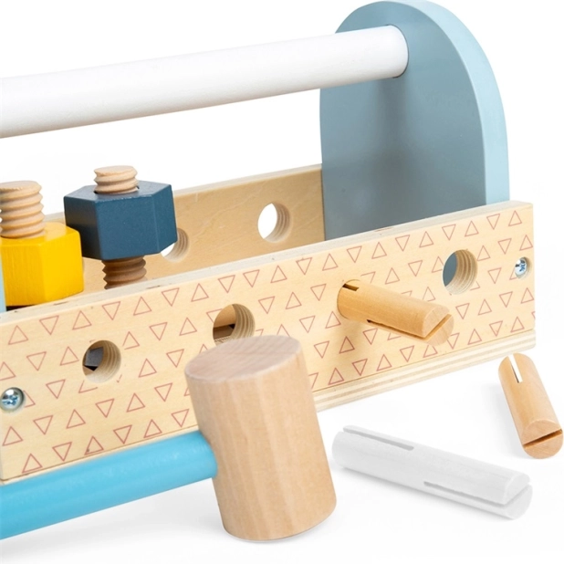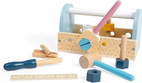 La caisse à outils en bois est le choix idéal pour les premières missions de réparation. Les enfants peuvent marteler, serrer et mesurer, tout en développant leur coordination œil-main, leur patience et leur vocabulaire. Ses dimensions compactes et sa poignée pratique permettent d’emporter le set partout.