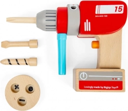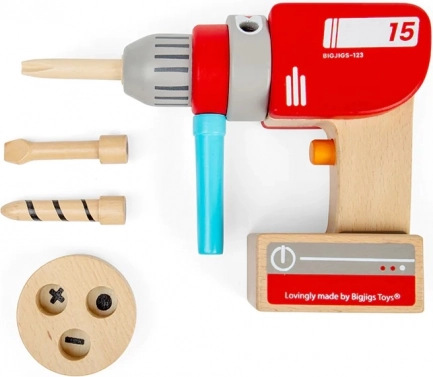 Cette perceuse en bois imite fidèlement un véritable outil, mais sans électricité ni parties tranchantes. Les enfants peuvent faire tourner manuellement la tête de la perceuse, basculer des modes imaginaires grâce au bouton à clic et fixer facilement les forets et vis magnétiques. Idéale pour des jeux de construction de petites étagères ou de meubles et pour développer des compétences pratiques.