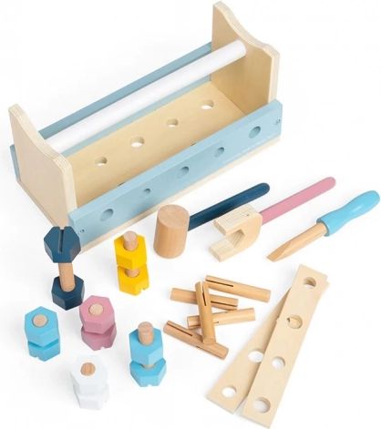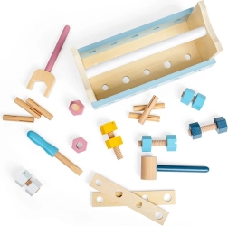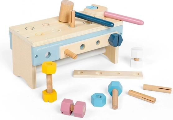 Un ensemble d’outils pour enfants intelligent et robuste qui se transforme d’un simple retournement en établi. Contient un marteau, une clé, un tournevis, une règle, des vis et des écrous. Grâce à ses dimensions compactes et à sa poignée intégrée, il est idéal pour les déplacements. Fabriqué en bois certifié FSC®, il développe la motricité fine, la créativité et les compétences sociales.