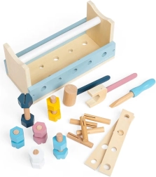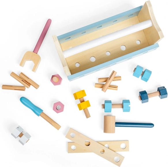 Comprend un marteau, un tournevis, une clé, une règle, des vis et des écrous – le tout adapté aux petites mains des enfants.