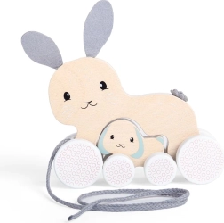 Ce charmant lapin à tirer avec son petit caché est le compagnon idéal pour les premières expéditions dans la maison. Grâce à sa fabrication de qualité en bois FSC® issu de sources durables et à des peintures sans danger pour les enfants, le jeu est non seulement amusant mais aussi sûr. Les oreilles et la queue en feutrine douce apportent une touche adorable et une agréable stimulation tactile.
