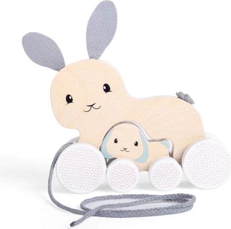 Lapin à tirer en bois avec son petit BIGJIGS TOYS