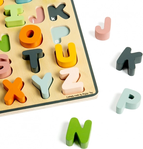 Ce puzzle en bois avec 26 lettres hautes en couleurs est l’outil idéal pour une première découverte de l’alphabet. Chaque lettre possède sa découpe dans une couleur correspondante, ce qui facilite la mémorisation et l’association correcte. Grâce aux pièces solides et faciles à saisir, les enfants exercent leur coordination œil-main et leur concentration.