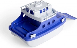 Le design du ferry comprend un pont supérieur ouvert avec des petits bancs et des fenêtres offrant une 'vue sur la mer'. L'emballage du produit est 100% écologique et recyclable, ce qui souligne encore plus l'engagement de la marque Green Toys pour la durabilité.