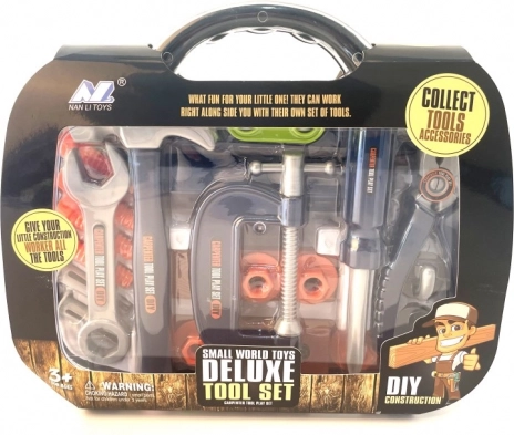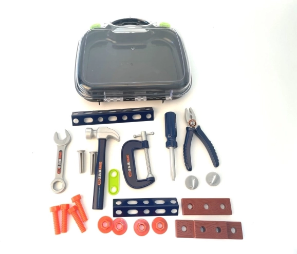 Un coffret cadeau idéal pour les petits bricoleurs ! Il contient divers outils en plastique comme un marteau, un tournevis et une clé, qui permettent aux enfants de découvrir le monde des réparations et de la construction en s’amusant.