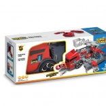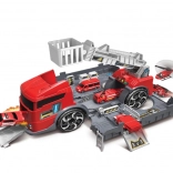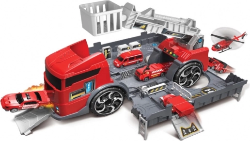 Station de service en forme de camion de pompiers, offrant des aventures infinies. L’emballage inclut deux mini voitures en plastique pour encore plus de plaisir.