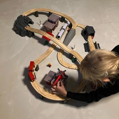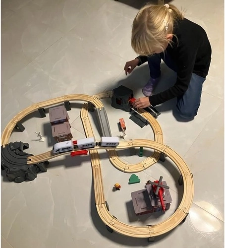 Kruzzel 22754 Circuit de train en bois à piles 70 pièces, 480 cm