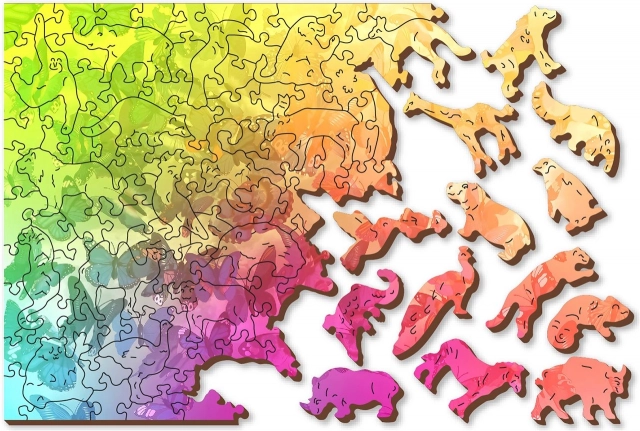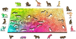 Le puzzle contient des pièces en forme d'animaux et d'objets qui peuvent être utilisées comme de petites figurines.