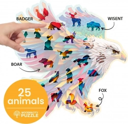 Découvrez la magie de l’assemblage avec le puzzle en bois Aigle avisé de WOODEN CITY. Ce produit vous séduira par ses pièces aux formes spéciales qui composent une mosaïque inoubliable de silhouettes animales. Les détails accentués au laser et les figurines autoportantes apportent de nouveaux défis et le plaisir de l’assemblage.