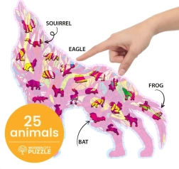 Le puzzle WOODEN CITY se distingue par ses exigences accrues grâce à ses pièces de formes variées, qui renforcent l'expérience de montage. Le puzzle est fabriqué à partir d'une planche de fibres de bois HDF robuste, garantissant des bords lisses sans éclats grâce à une découpe laser précise.