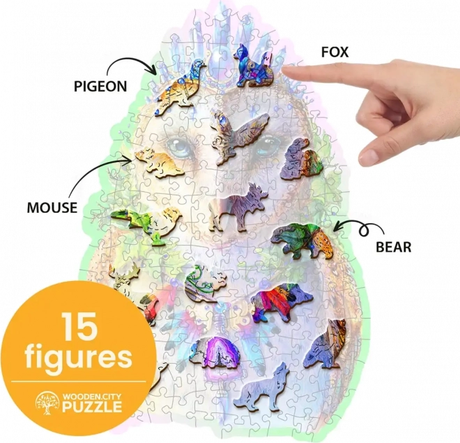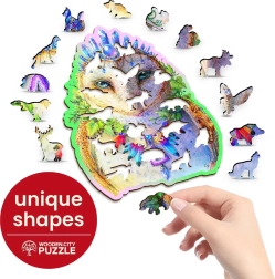 Puzzle en bois Chouette élégante de WOODEN CITY offre un divertissement sans fin grâce à ses pièces aux formes uniques. Créez et découvrez avec des pièces en forme d’animaux, qui peuvent se tenir comme de petites figurines indépendantes.
