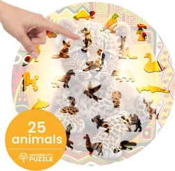 Puzzle en bois découpé au laser de la marque Wooden City offrant un immense divertissement grâce à des pièces spécialement façonnées. L’assemblage est plus exigeant grâce aux formes animales détaillées, qui peuvent tenir comme de petites figurines. Ne contient aucun emballage en plastique, ce qui favorise l’écologie.