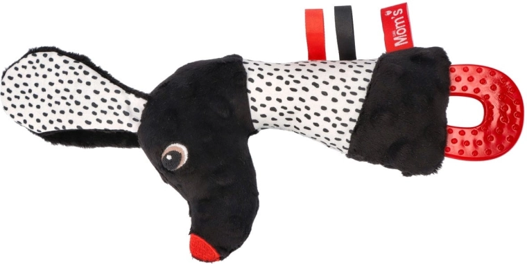 Le jouet souple en tissu avec couineur et anneau de dentition Jammy de Mom’s Care a été conçu pour les tout-petits. Nous avons réuni dans un seul jouet tout un ensemble de sensations, spécialement adaptées aux besoins de votre enfant. Pour la confection de l’anneau de dentition, nous avons utilisé des tissus certifiés aux textures variées. Ainsi, votre enfant peut découvrir le monde et développer son sens du toucher. Nous veillons aussi au bon développement de la vision. Le coton noir et blanc utilisé au dos et sur les oreilles favorise une perception correcte des couleurs.