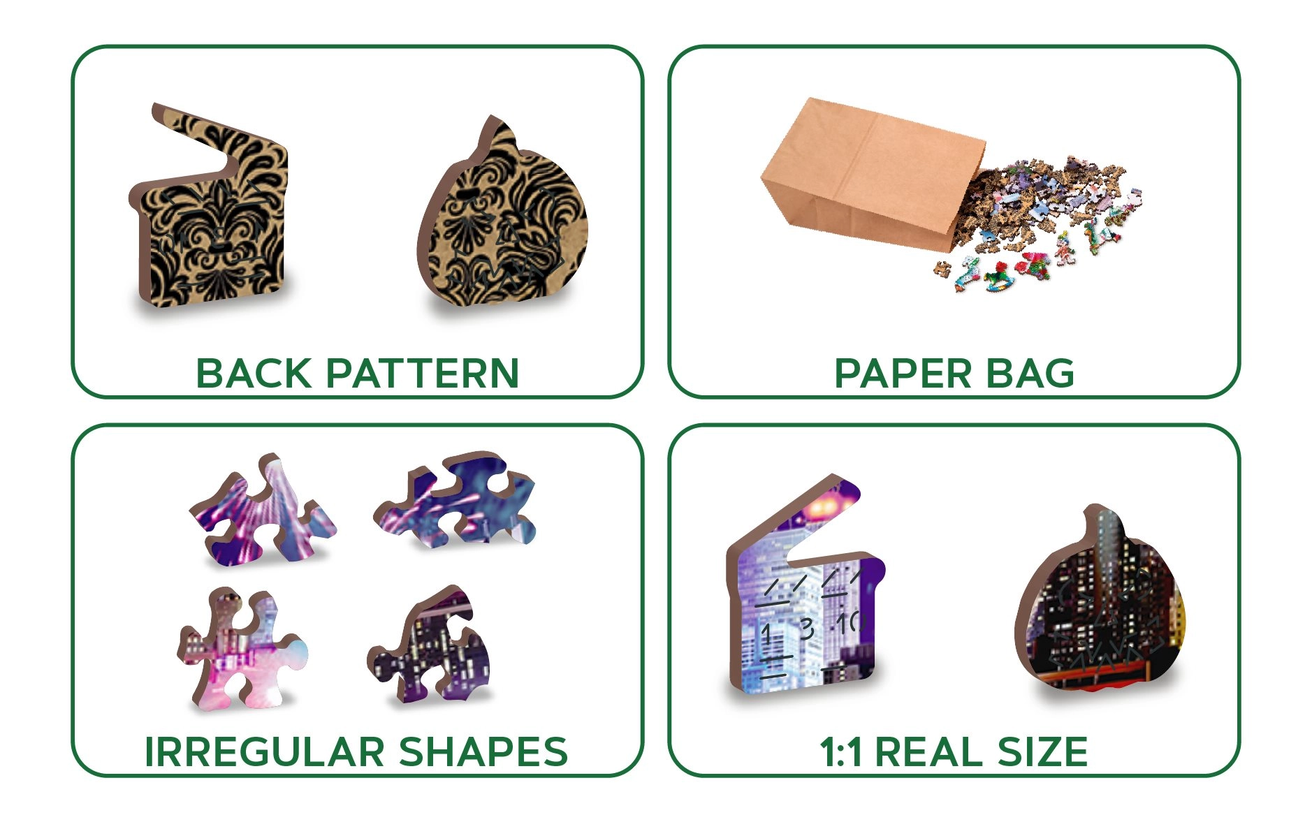 Plongez dans de superbes défis avec notre puzzle en bois recto-verso New York de nuit 2-en-1. Des détails découpés au laser garantissent des bords lisses sans échardes et la plus haute précision de fabrication :