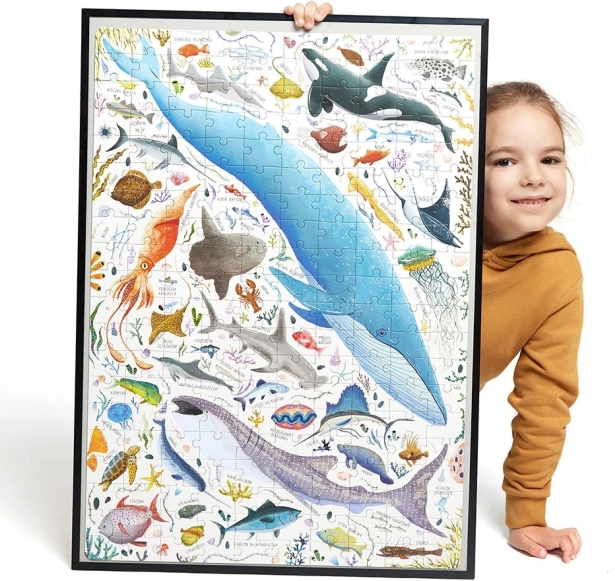 Assemblez le puzzle comme vous aimez – seul, en famille ou avec des amis, pourquoi pas en écoutant des chants marins. Une source d’inspiration idéale pour les futurs océanographes et les passionnés de biologie marine.