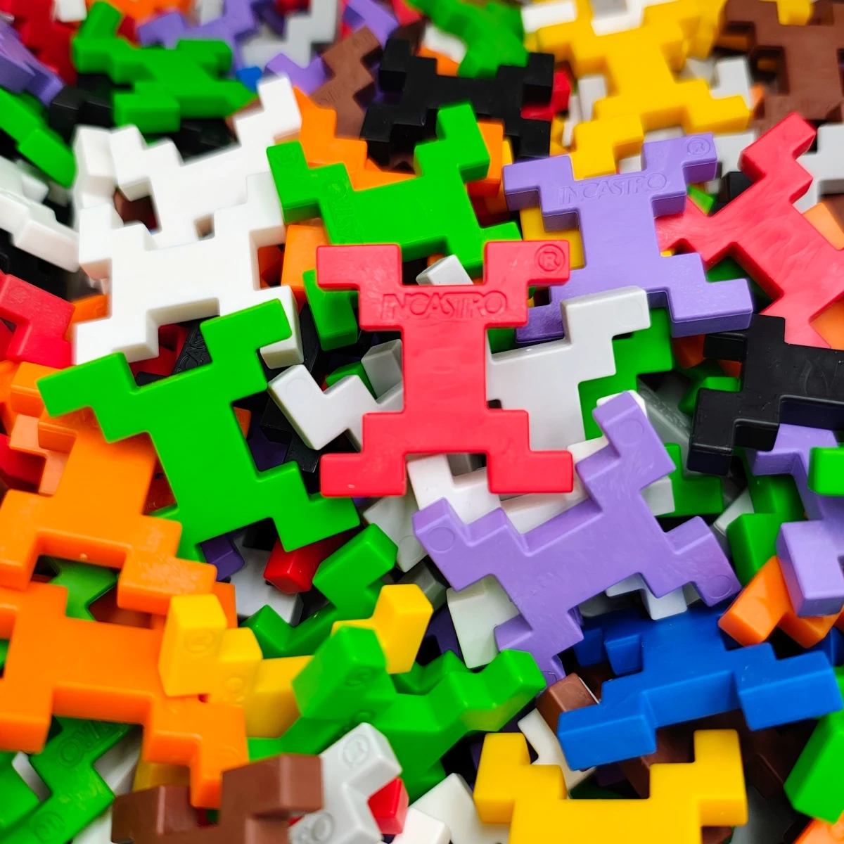 Découvrez des possibilités de construction illimitées avec le jeu INCASTRO. Les pièces en forme de « X » s’emboîtent avec précision et permettent des assemblages stables sous différents angles. Vous créez ainsi facilement des structures simples ou avancées – petits animaux, personnages, ponts, maisons, avions et projets originaux. La palette de 10 teintes inspire la création de modèles expressifs et développe le sens des couleurs.